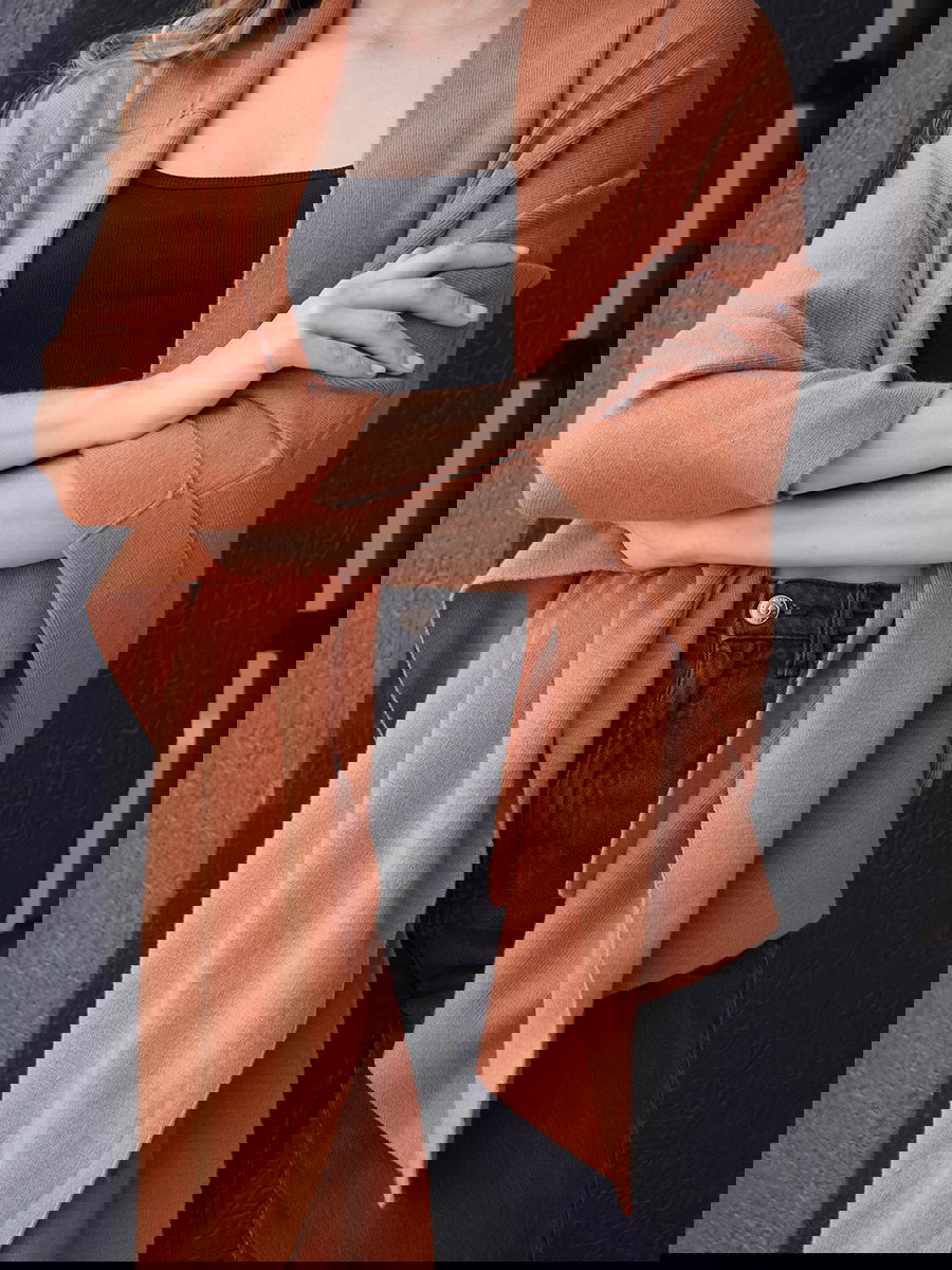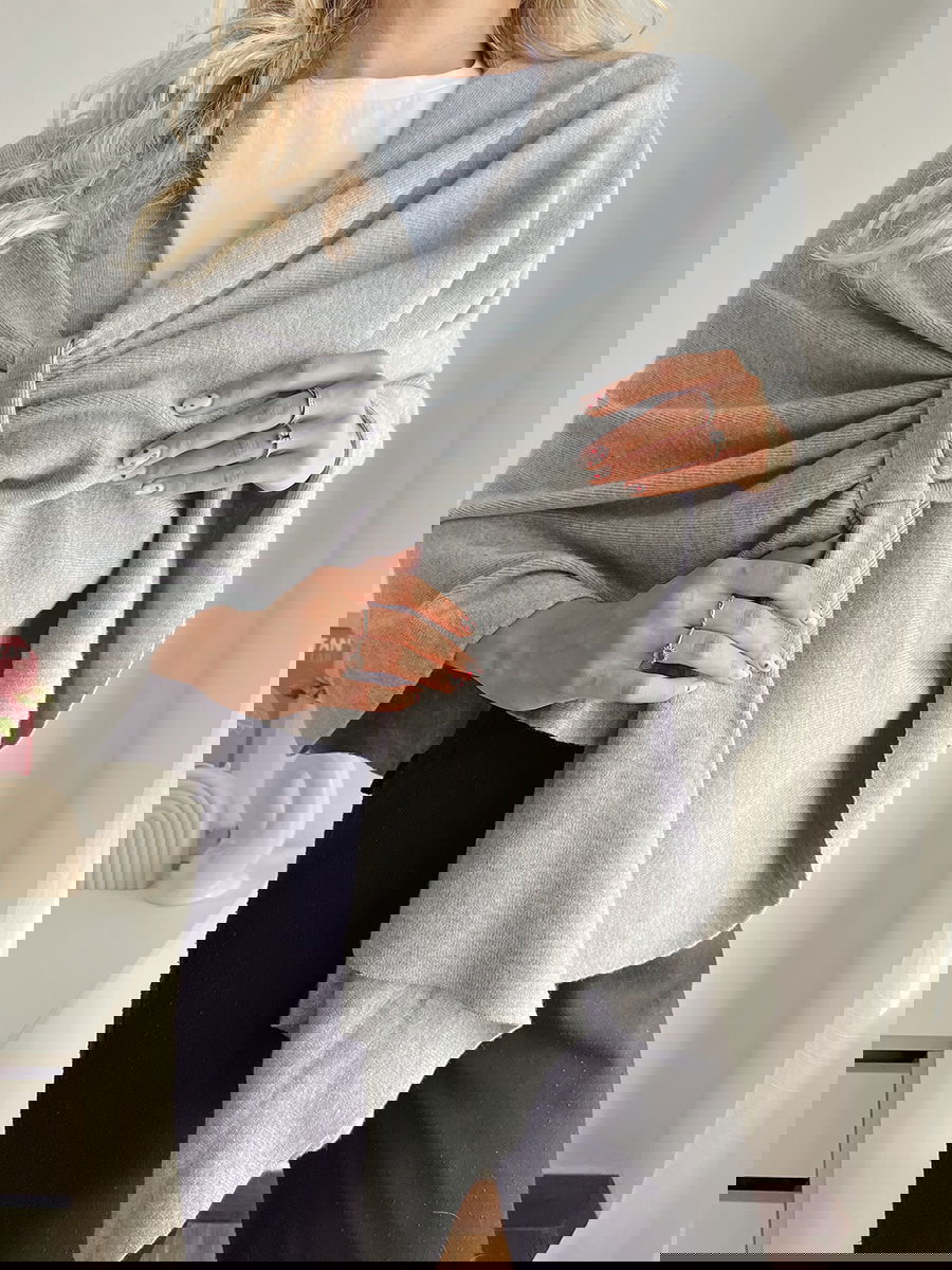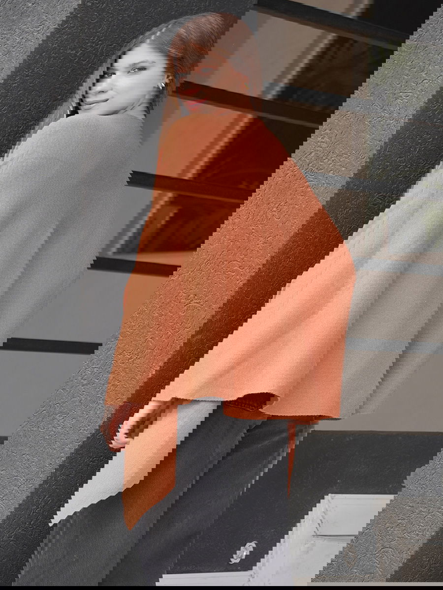 Ruana asimétrica con cierre frontal de la misma tela en forma de presilla