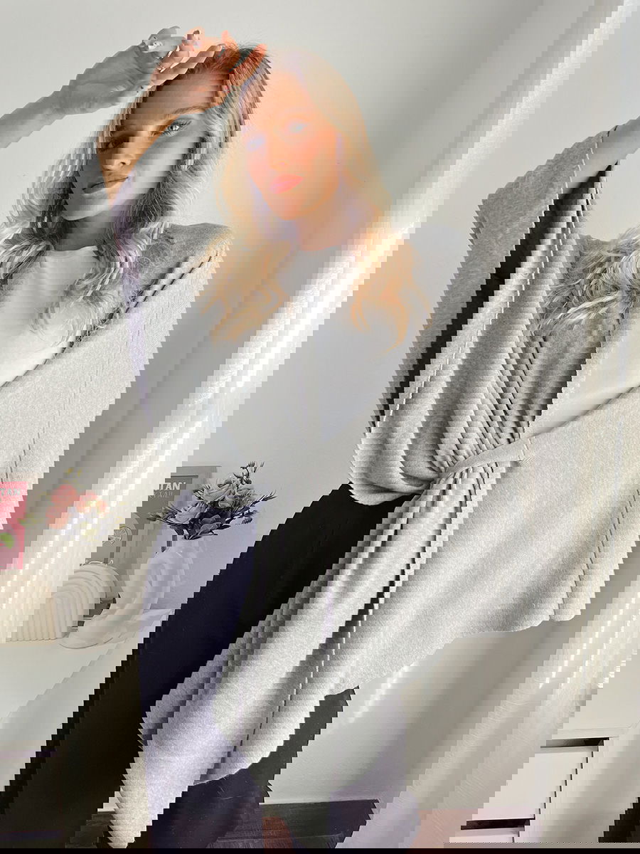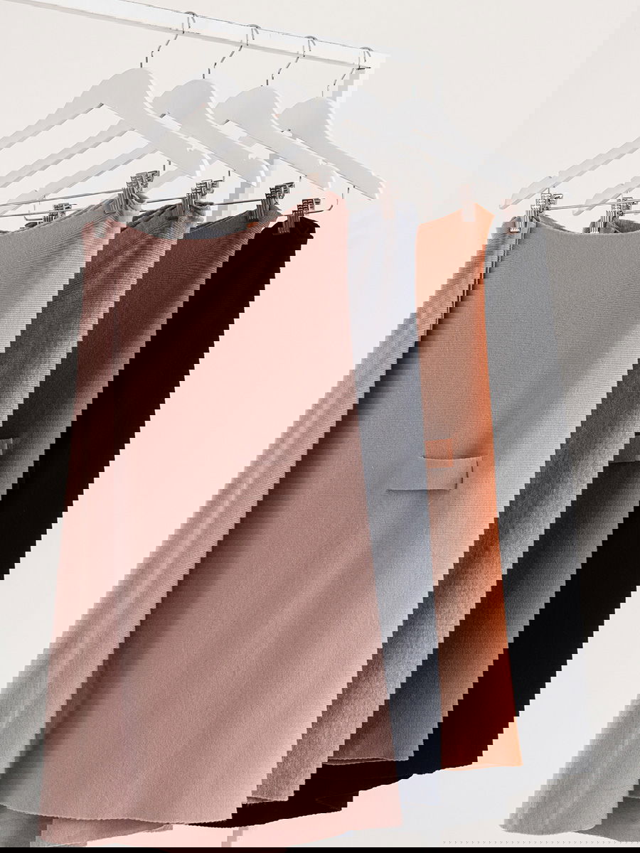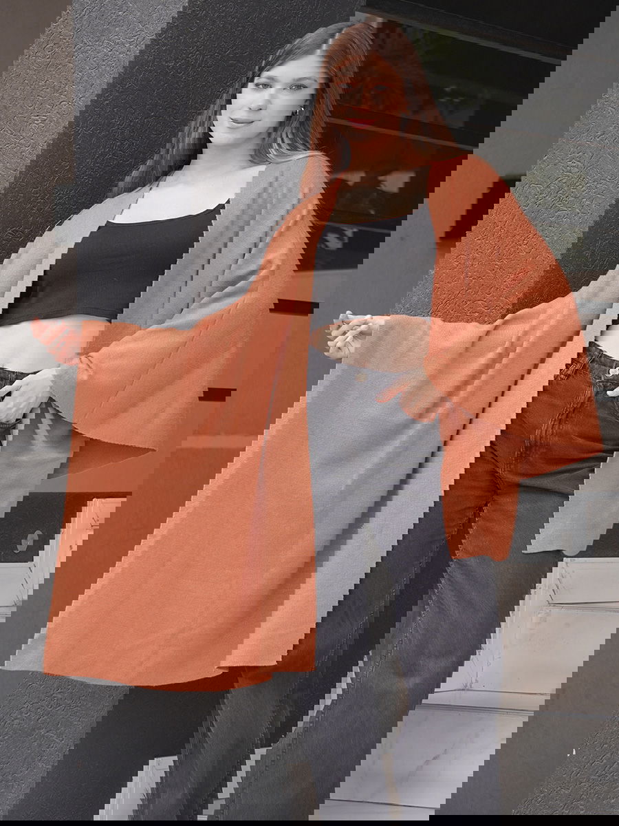 Ruana asimétrica con cierre frontal de la misma tela en forma de presilla