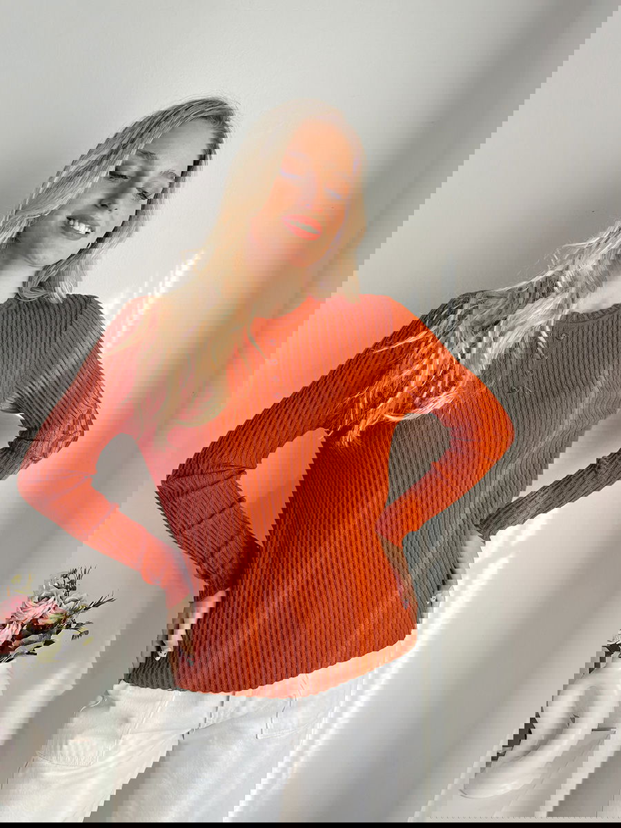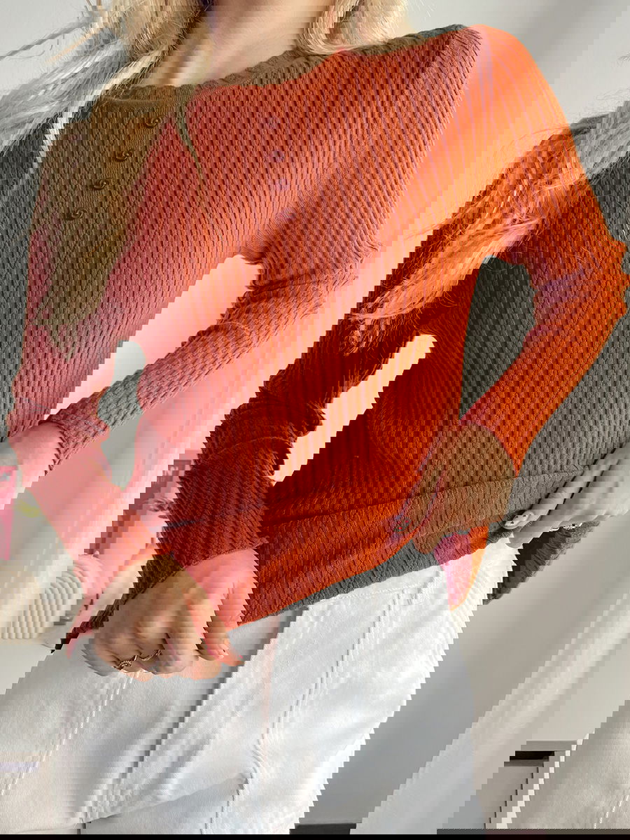 Suéter punto acanalado con detalle de tres botones