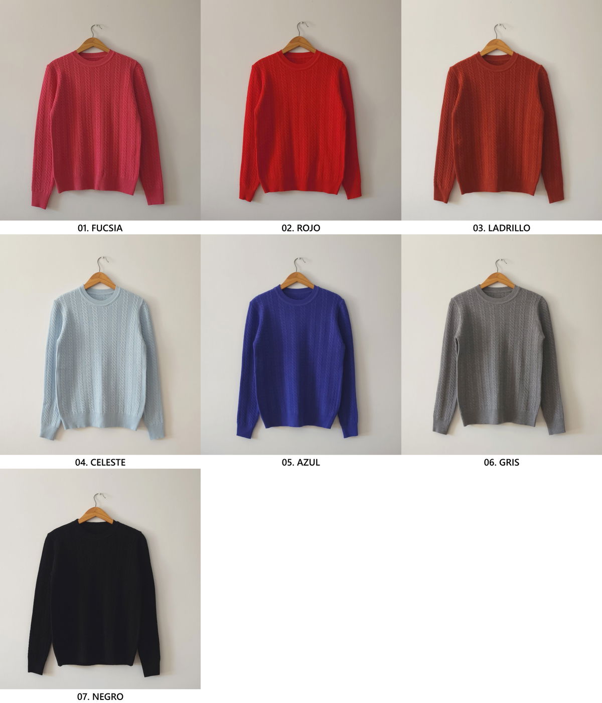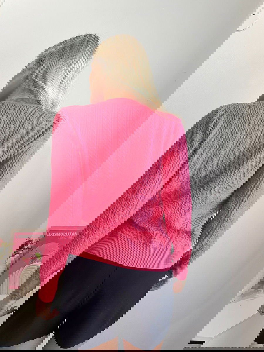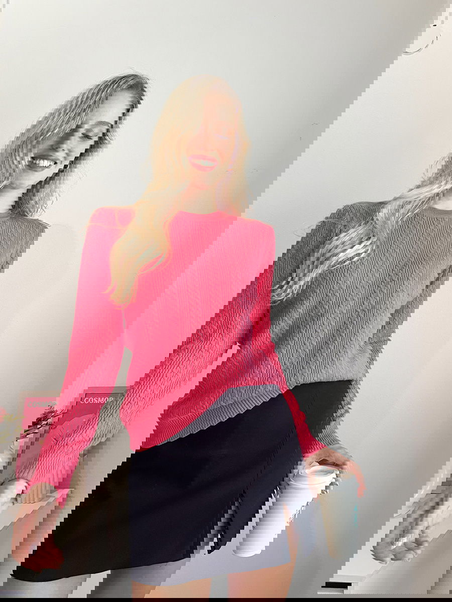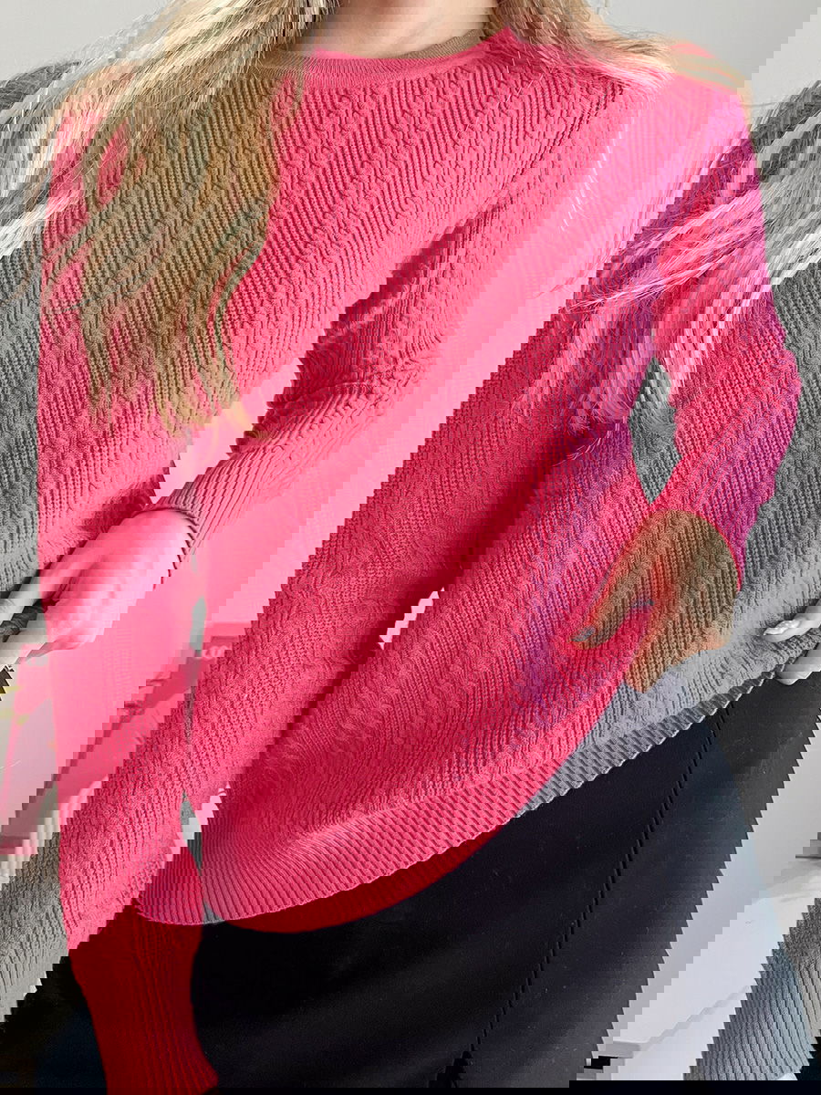 Sweater de punto con diseño de trenzas verticales en todo el frente y mangas.