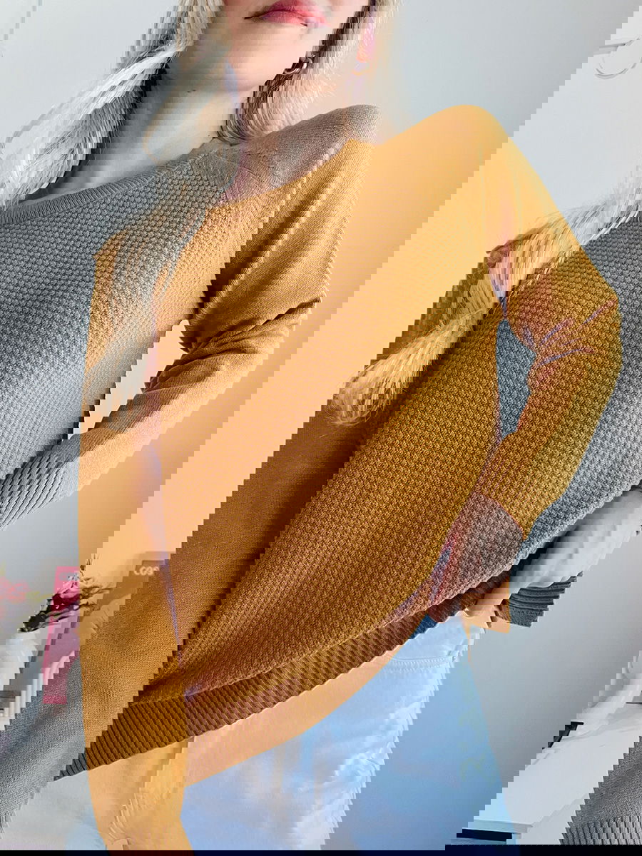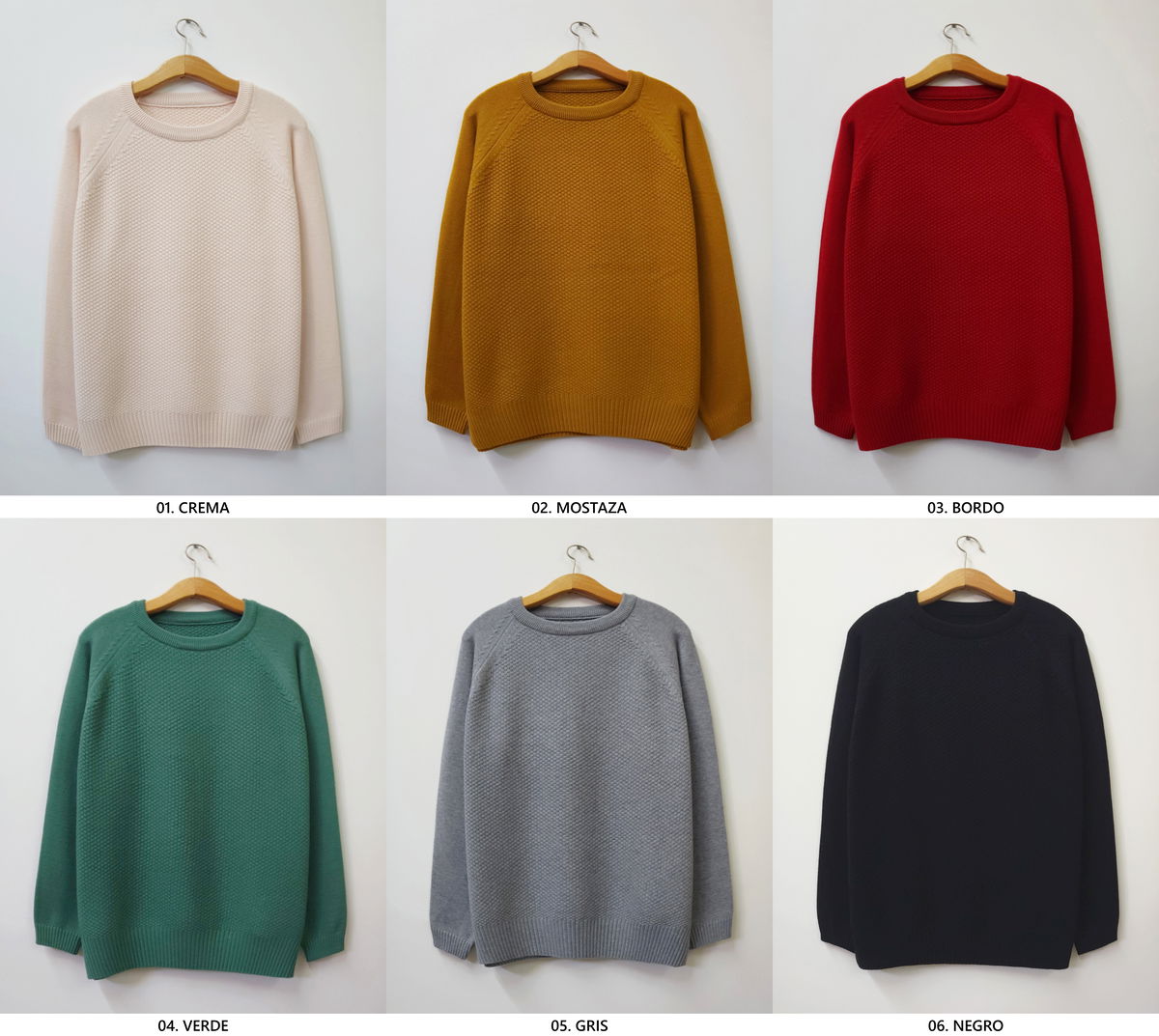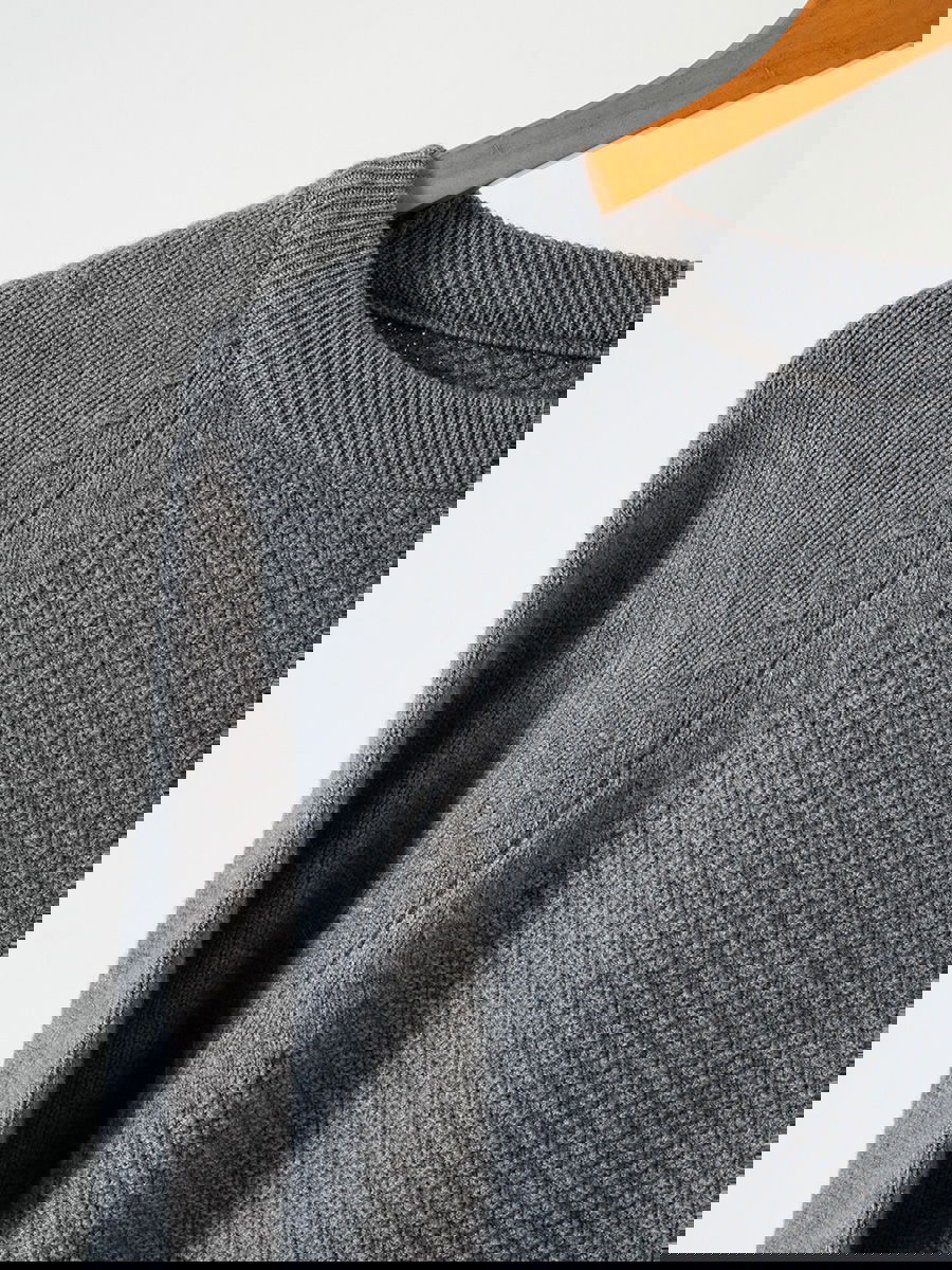 Sweater de punto con textura en el frente y mangas lisas tipo ranglan. Silueta amplia y calce relajado. Cuello redondo. Puños y ruedo con terminación acanalada.