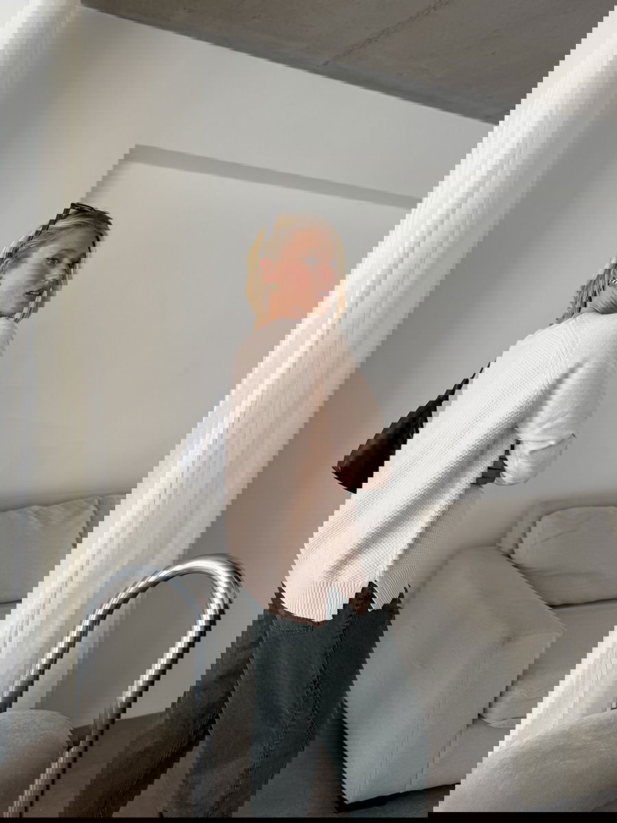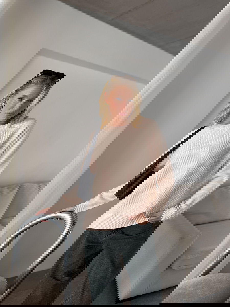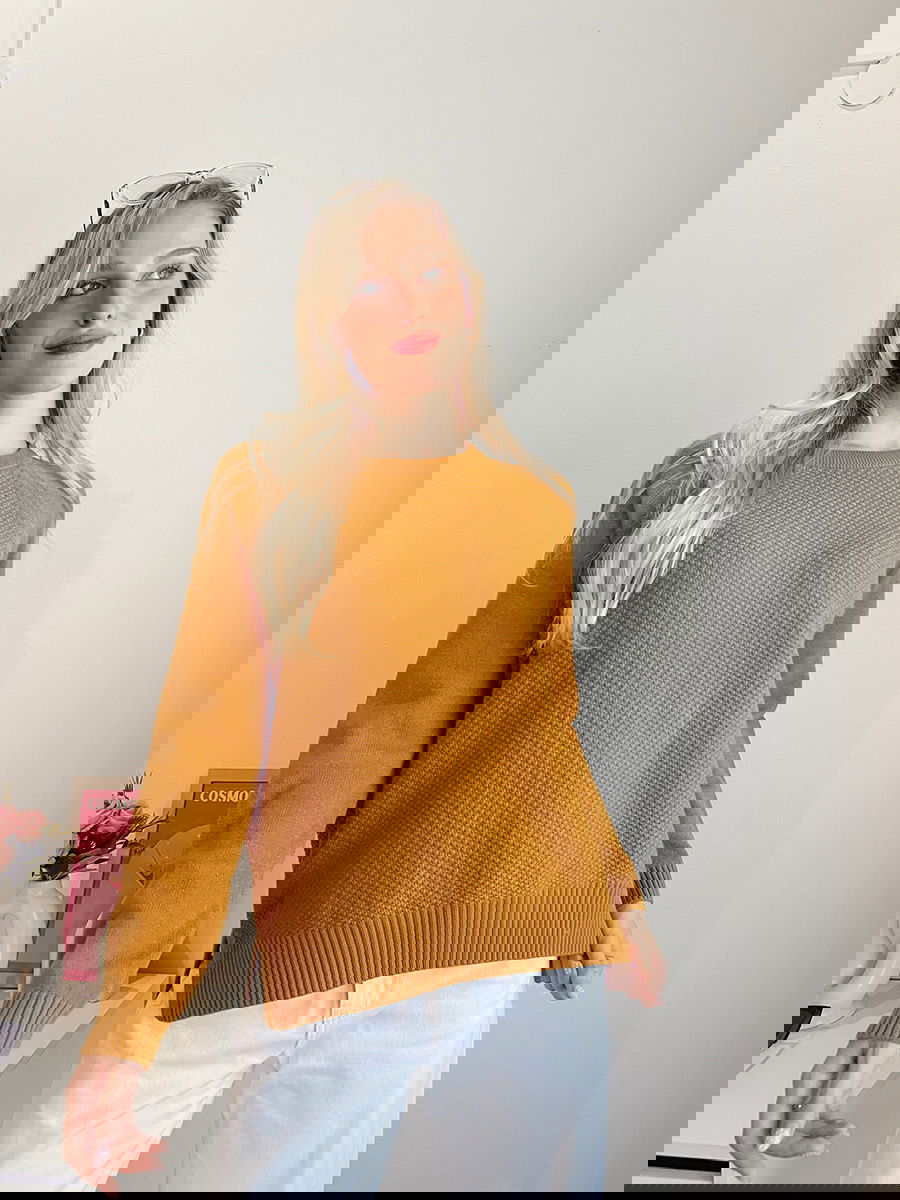 Sweater de punto con textura en el frente y mangas lisas tipo ranglan. Silueta amplia y calce relajado. Cuello redondo. Puños y ruedo con terminación acanalada.