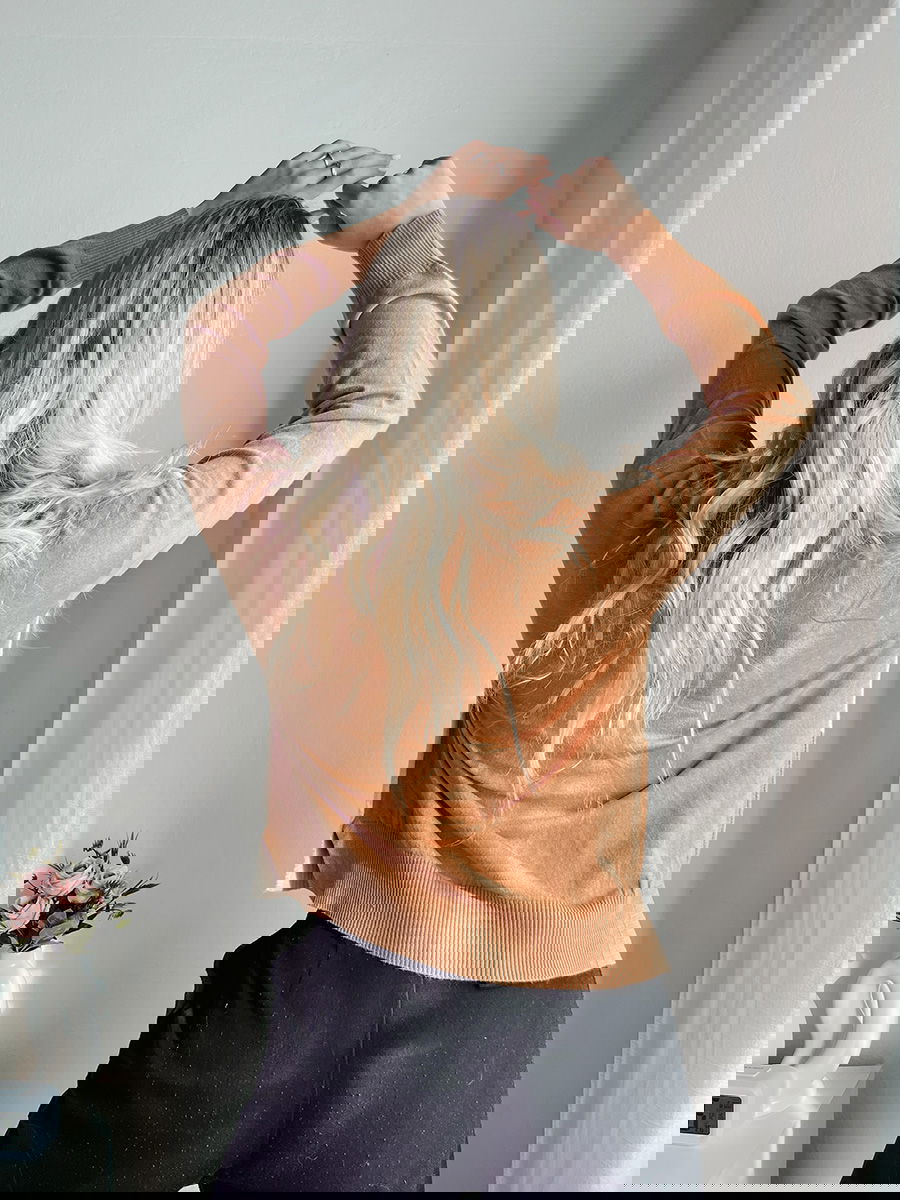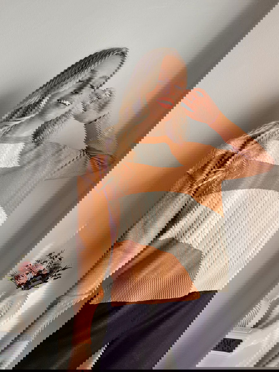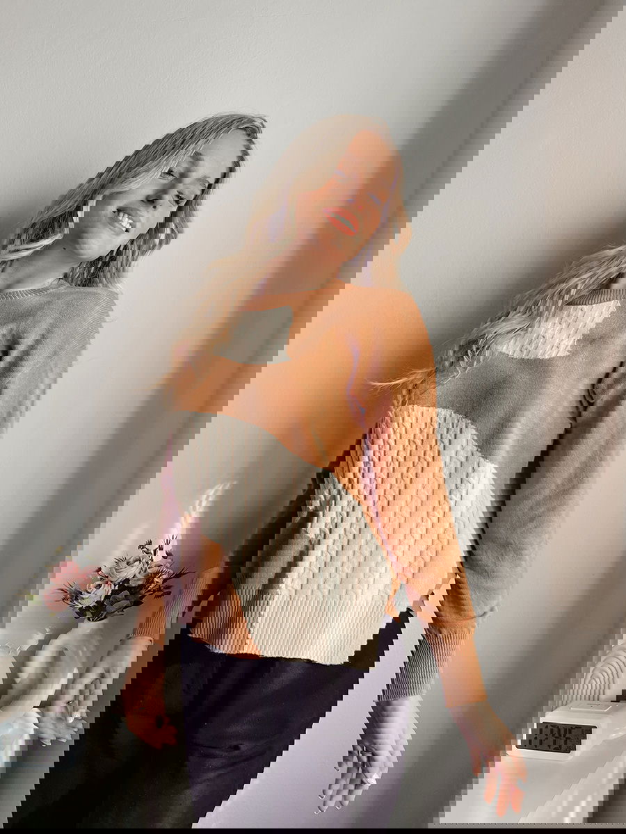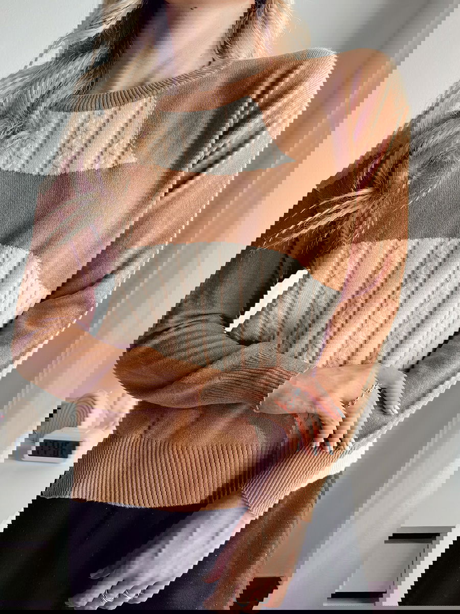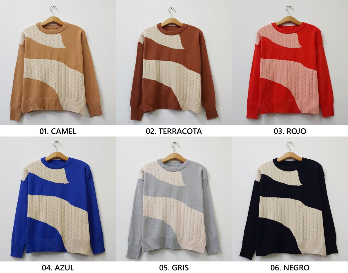 Suéter con combinación de puntos trenzados y lisos