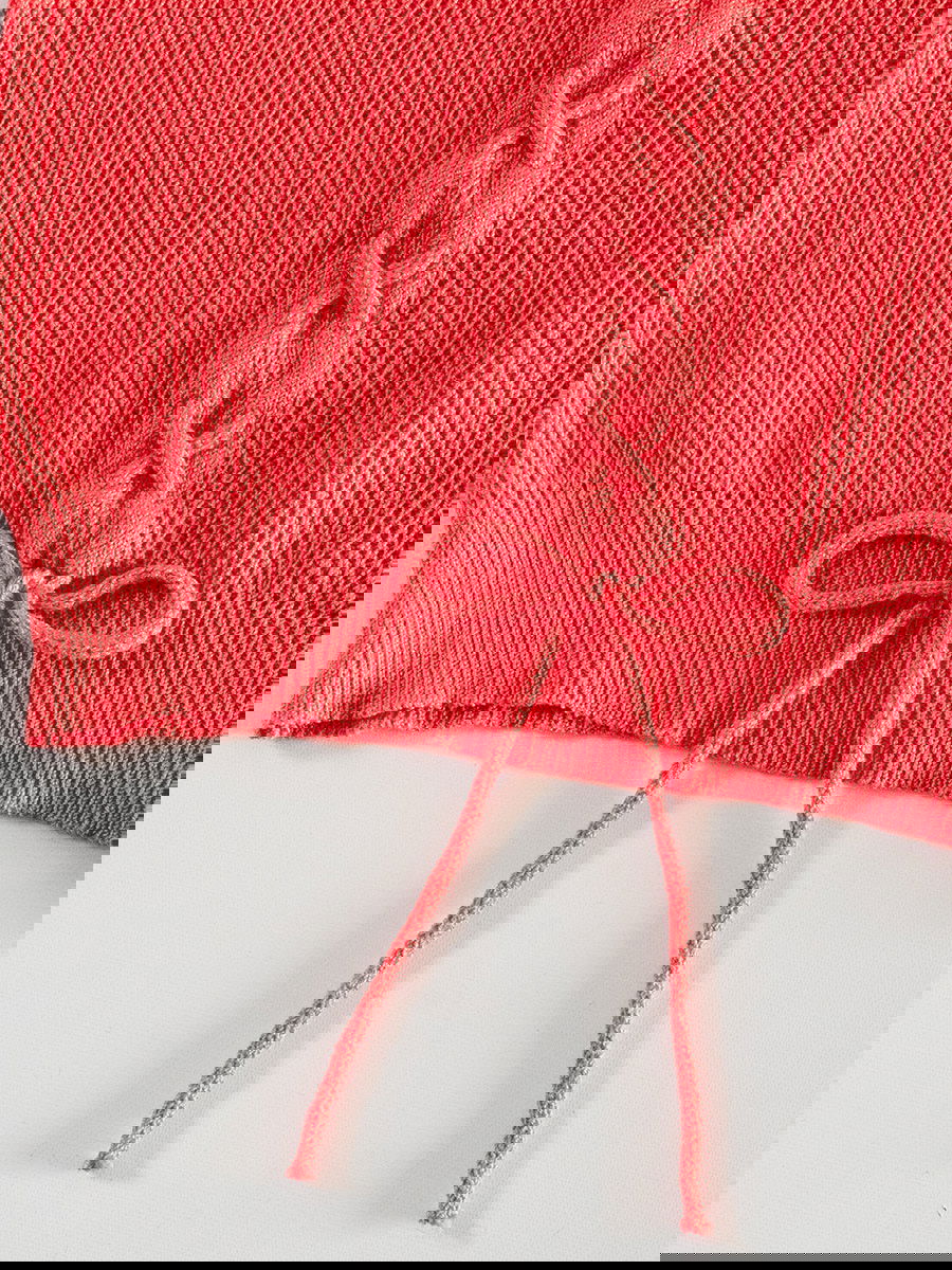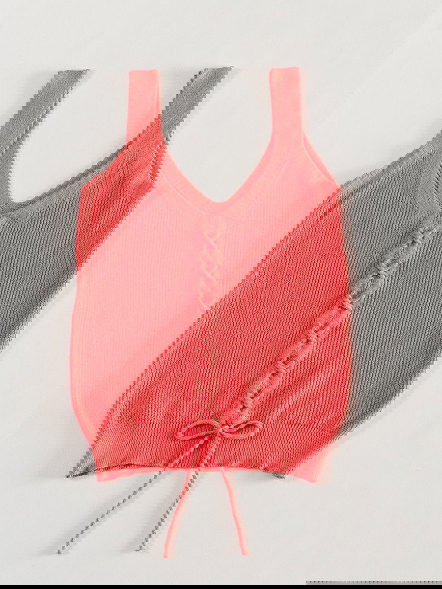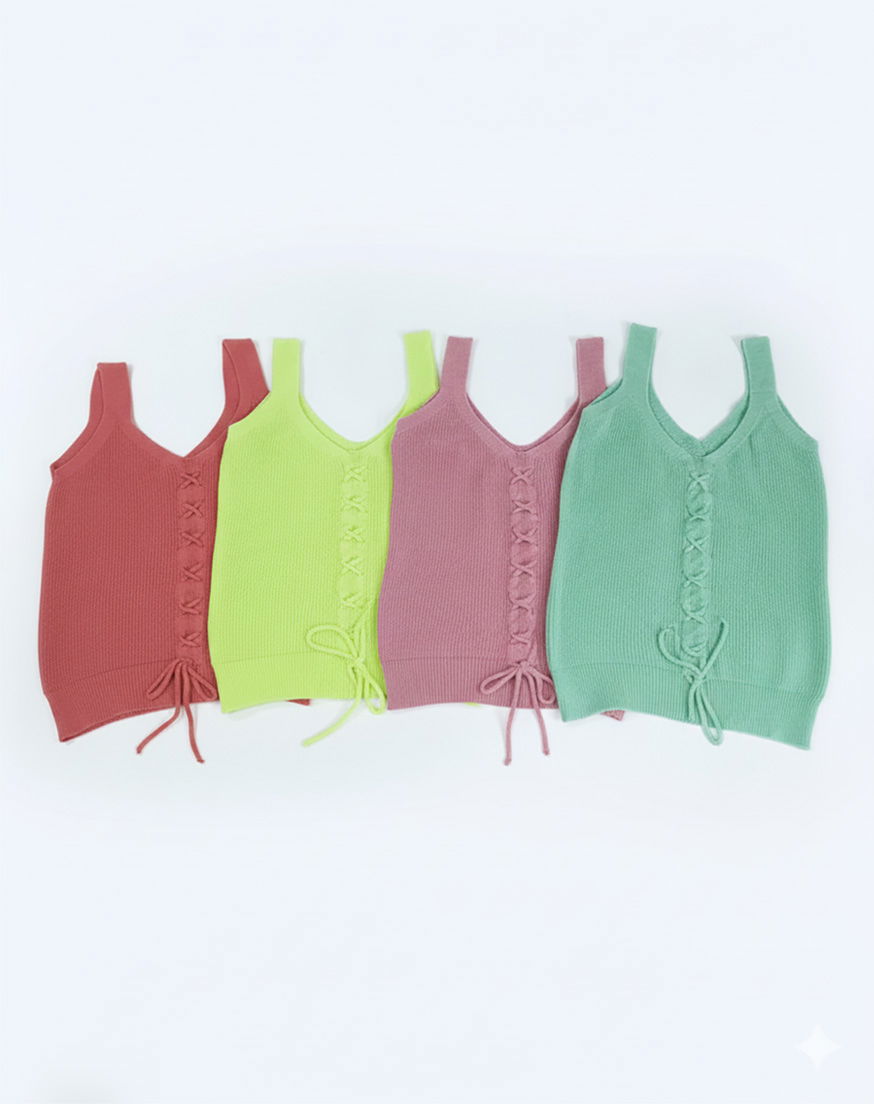 Top tejido con escote en V y detalle de cordón entrelazado frontal.