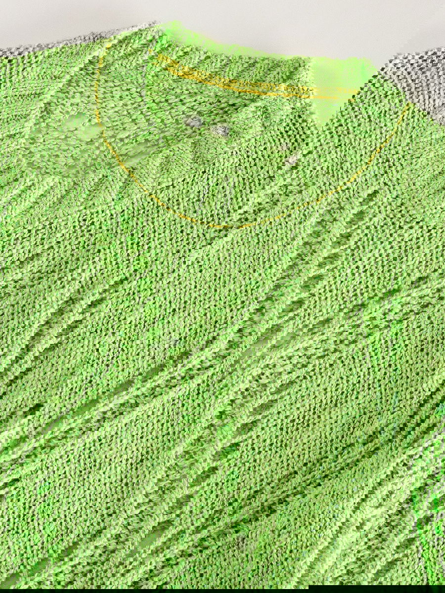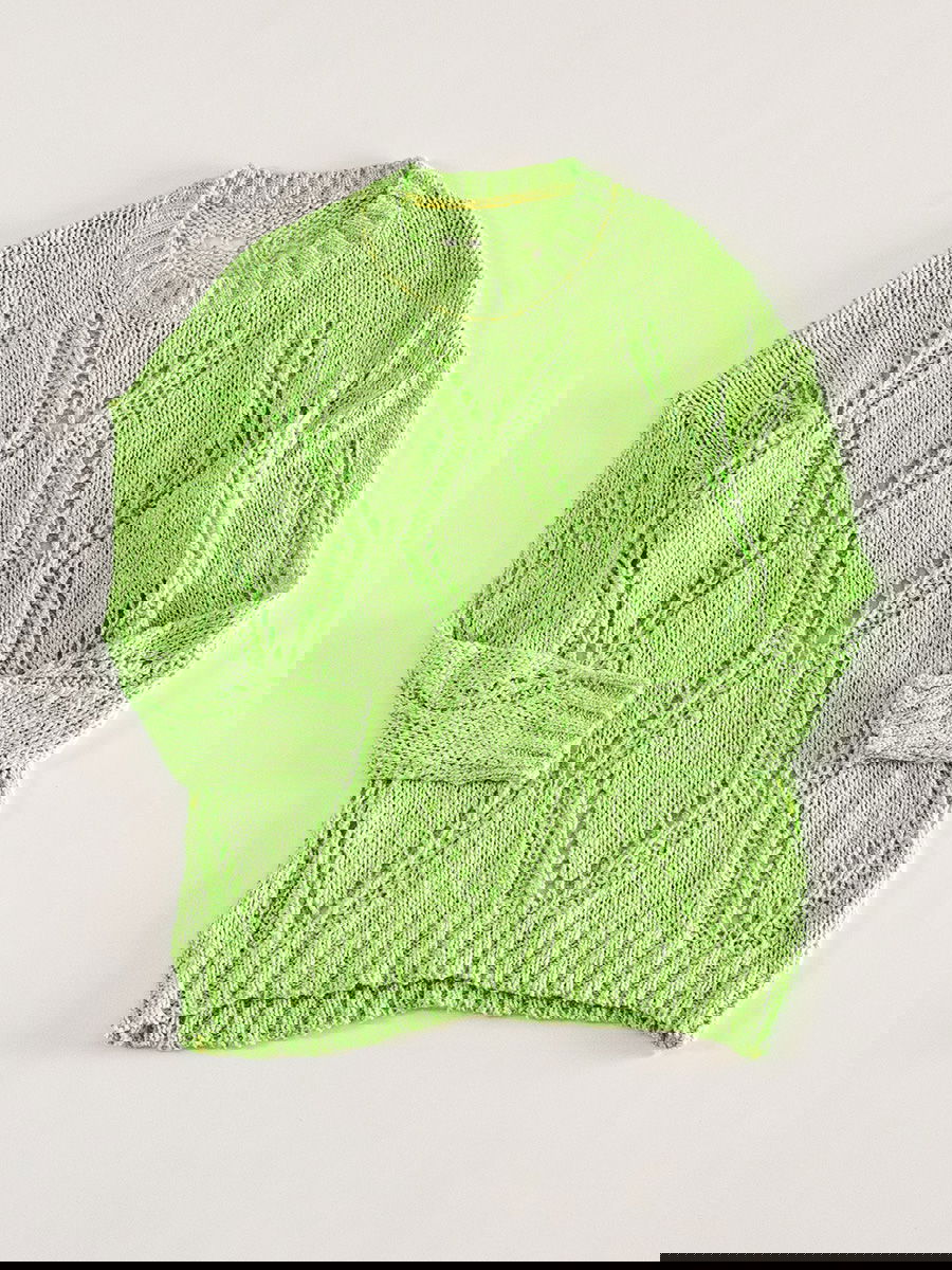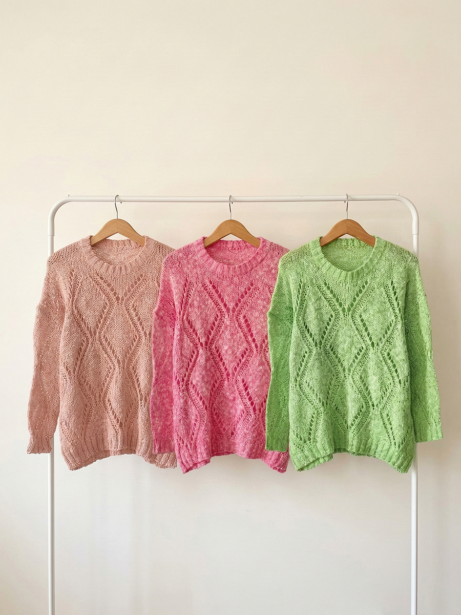 Sweater tejido calado con diseño geométrico y cuello redondo canalé.